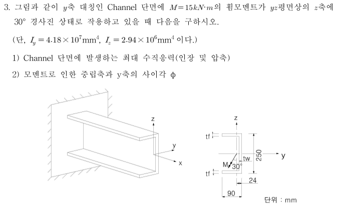 3, ±×¸²°ú °°ÀÌ yÃà ´ëĪÀÎ Channel ´Ü¸é¿¡ M=18 kN¡¤m ÀÇ ÈÚ¸ð¸àÆ®°¡