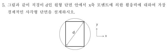 5. ±×¸²°ú °°ÀÌ Á÷°æÀÌ dÀÎ ¿øÇü ´Ü¸é ¾È¿¡¼ xÃà ¸ð¸àÆ®¿¡ ÀÇÇÑ ÈÚÀÀ·Â¿¡ ´ëÇÏ¿© °¡Àå °æÁ¦ÀûÀÎ »ç°¢Çü ´Ü¸éÀ» ¼³°èÇϽÿÀ.