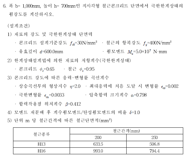 6. Æø b= 1,000mm, ³ôÀÌ h= 700mmÀÎ Á÷»ç°¢Çü ö±ÙÄÜÅ©¸®Æ® ´Ü¸é¿¡¼ ±ØÇÑÇѰè»óÅÂÀÇ