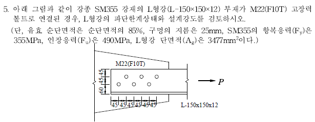 5. ¾Æ·¡ ±×¸²°ú °°ÀÌ °Á¾ SM355 °ÀçÀÇ LÇü°(L-150¡¿150¡¿12) ºÎÀç°¡ M22(F10T) °íÀå·Â