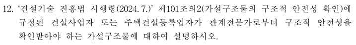 12. ¡®°Ç¼³±â¼ú ÁøÈï¹ý ½ÃÇà·É(2024. 7.)¡¯ Á¦101Á¶ÀÇ2(°¡¼³±¸Á¶¹°ÀÇ ±¸Á¶Àû ¾ÈÀü¼º È®ÀÎ)¿¡
